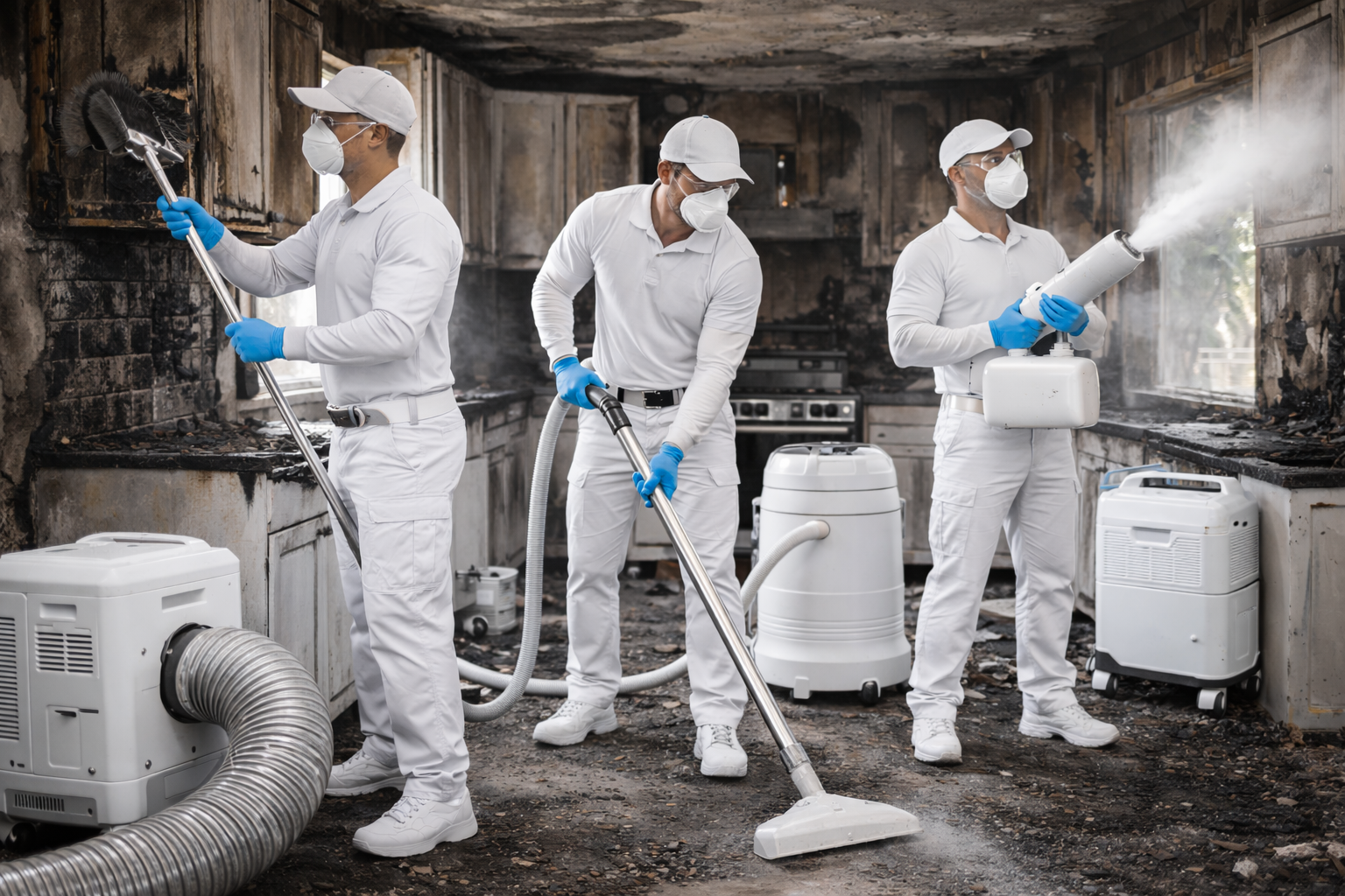 Our team uses advanced techniques and equipment to safely and effectively remove smoke and soot from all affected surfaces. This process is crucial for preventing further damage and health hazards, ensuring a safe environment.